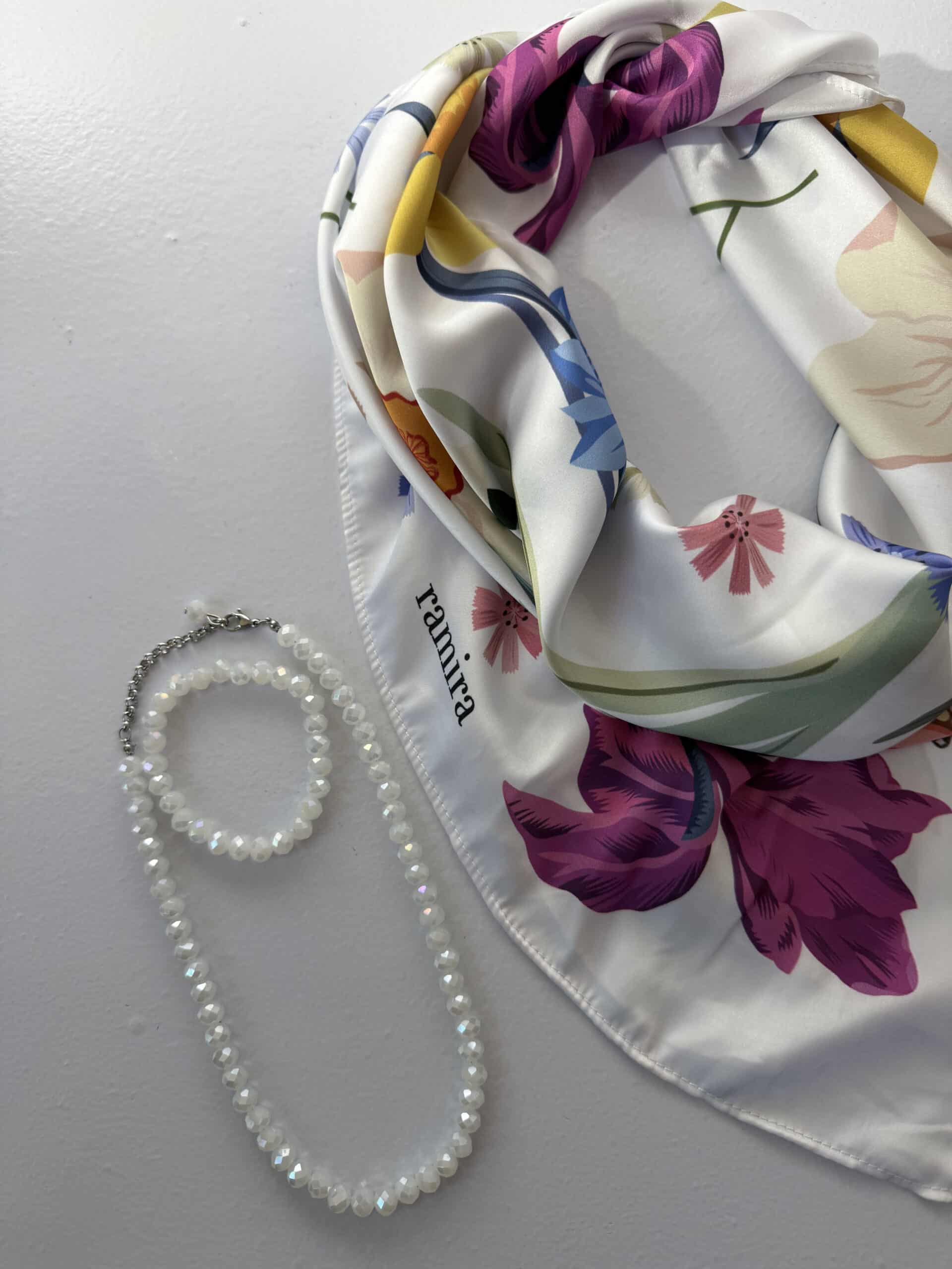 Este combo reúne tres pulseras diseñadas para elevar cualquier look con un equilibrio perfecto entre brillo, suavidad y color.