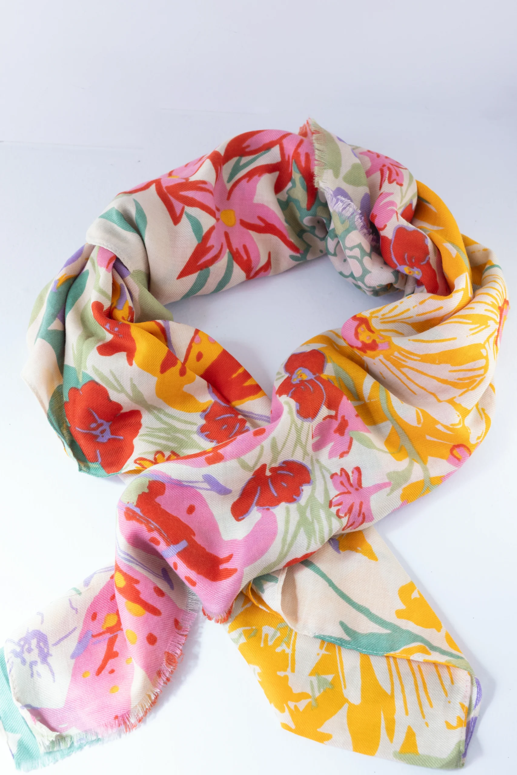 Pashmina floral multicolor, ligera y vibrante, perfecta para dar alegría y estilo a cualquier look