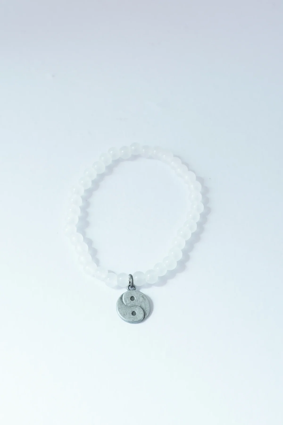 Pulsera de Cuarzo Blanco con dije Yin Yang